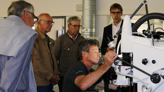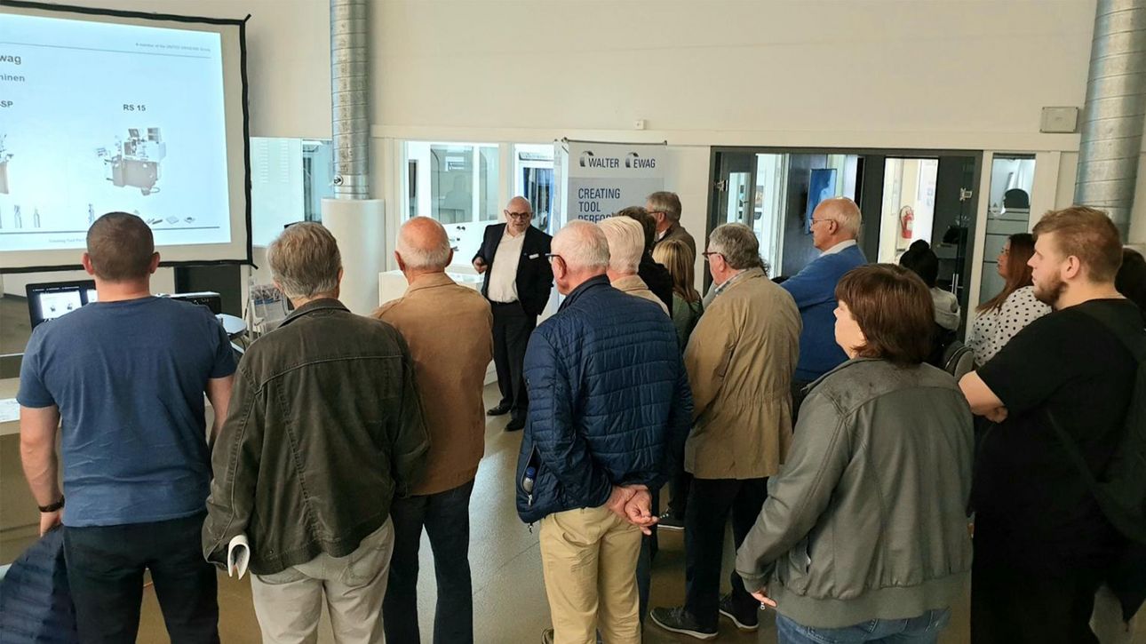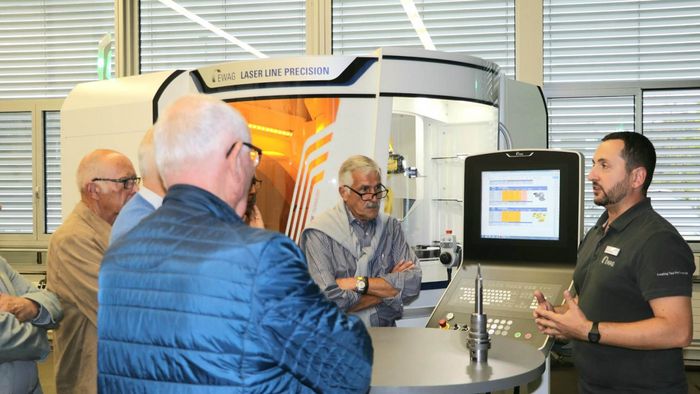 Nach einer kurzen Präsentation im Demo-Raum, führten sie EWAG Maschinen und den Betrieb in Etziken an drei verschiedenen Posten vor: Die Mitarbeiter erklärten den Besuchern, wie die Universal-Schleifmaschine WS 11 funktioniert und stoppten an einer Lasermaschine, auf der Mikrobohrer mit einem Durchmesser von unter 0,5 Millimeter gefertigt wurden, bevor es in die Montage ging. Zwei Besucher wurden ganz emotional, als sie die WS 11 sahen. Sie hatten bereits vor 40 Jahren auf dieser Maschine gearbeitet und waren sowohl überrascht als auch erfreut, dass sie noch produziert und eingesetzt wird – wenn auch in einer viel moderneren Version als damals.