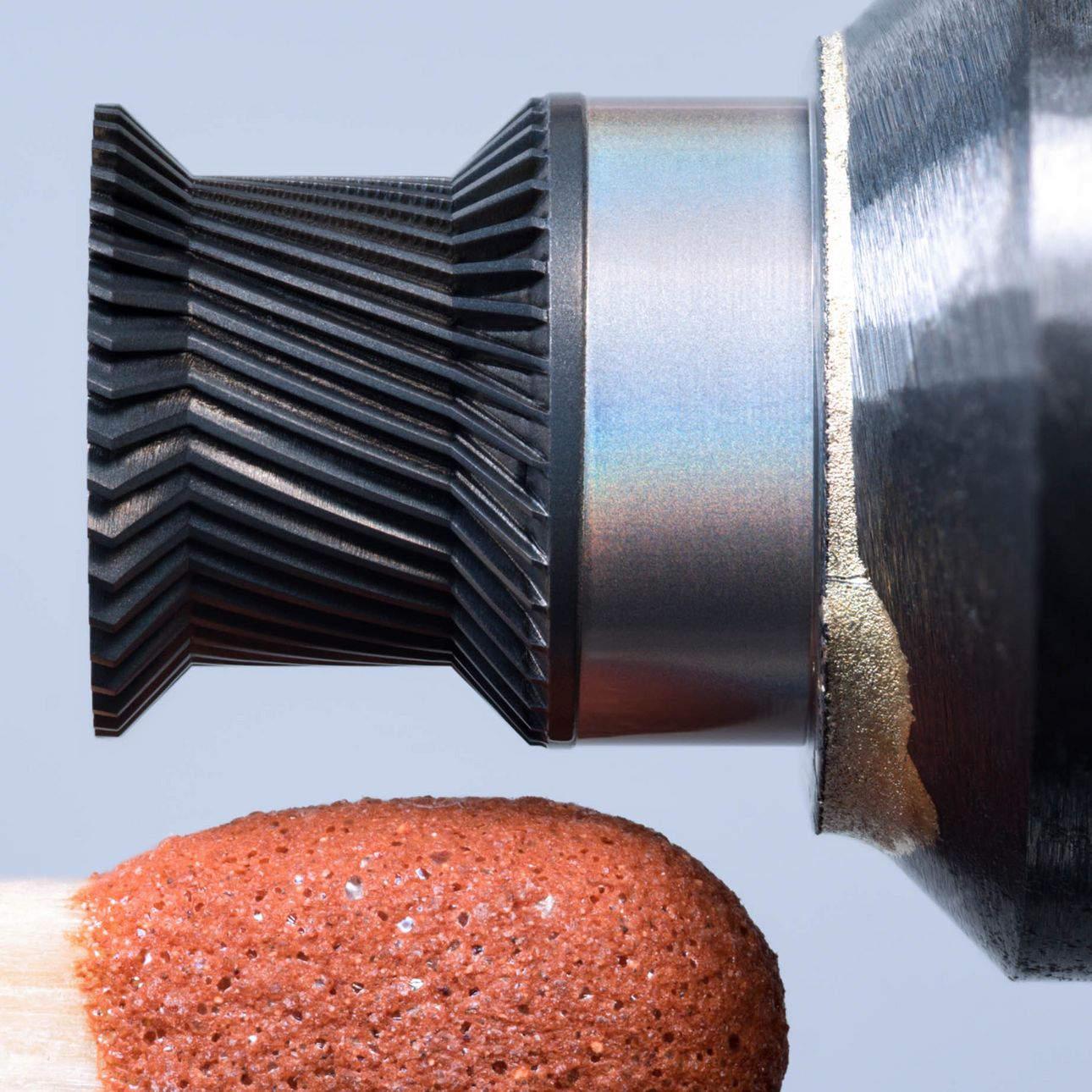 iPhone 6とSamsung Galaxy S5世代のスマートフォン以降、レーザ加工による工具の使用が増えています。Apple iPhone 6では、アルミニウムボディの丸みはPCDプロファイルカッターで加工されていました。これに対し、iPhone Xではハウジングフレームにステンレススチールが取り付けられています。これは、PCDのようなダイアモンド工具では、加工できず、その代わりにカスタマイズされた工具:Claus Dold博士(左)、EWAGのプロセスイノベーション責任者CBN工具が用いられます。この工具も、EWAG LASER LINE ULTRAやLASER LINE PRECISIONのような機械で製造できます。